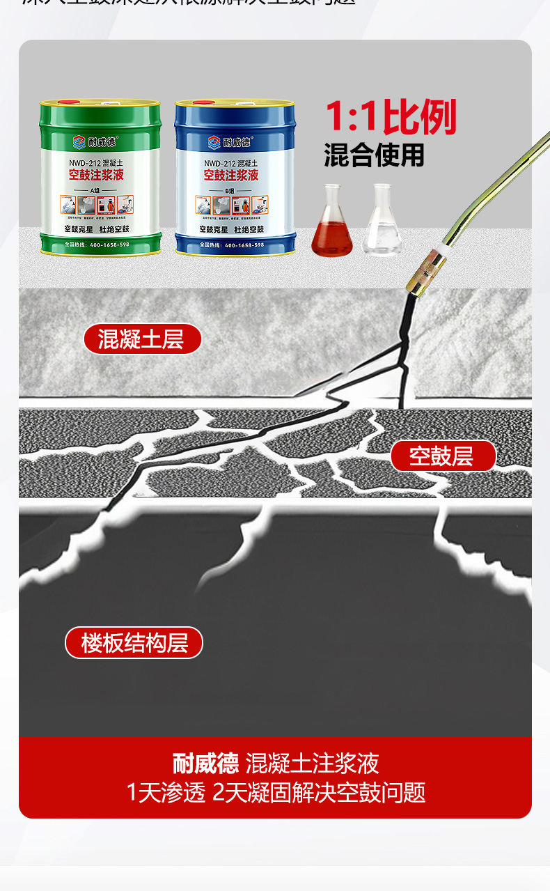 首页 >> 空鼓加固系列 >>NWD-212墙面空鼓注浆液(双组份)